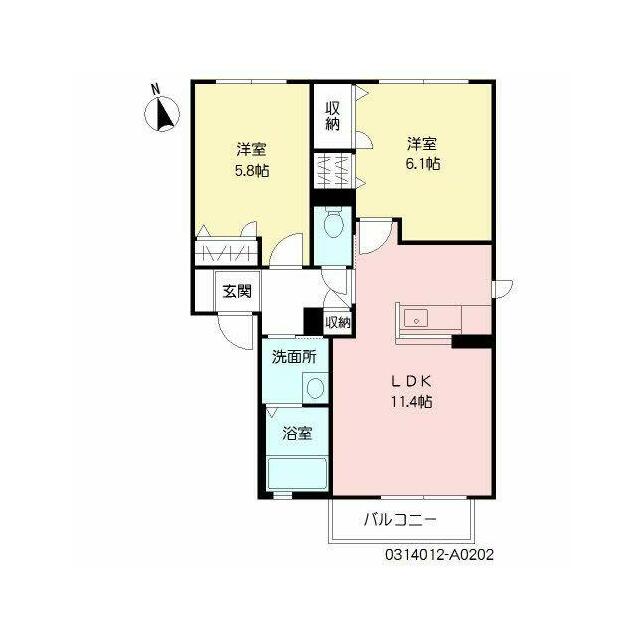 2LDK(LDK11.4帖 洋室6.1帖 洋室5.8帖) |
