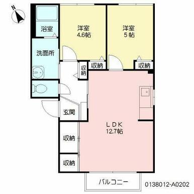 2LDK(LDK12.7帖 洋室5.0帖 洋室4.6帖) |